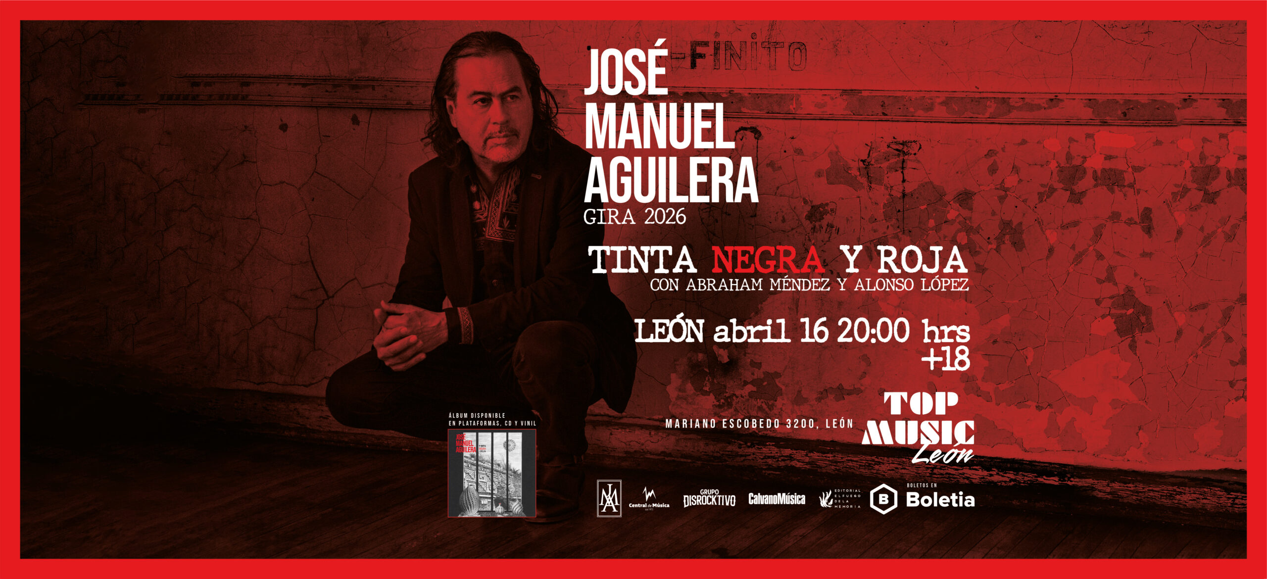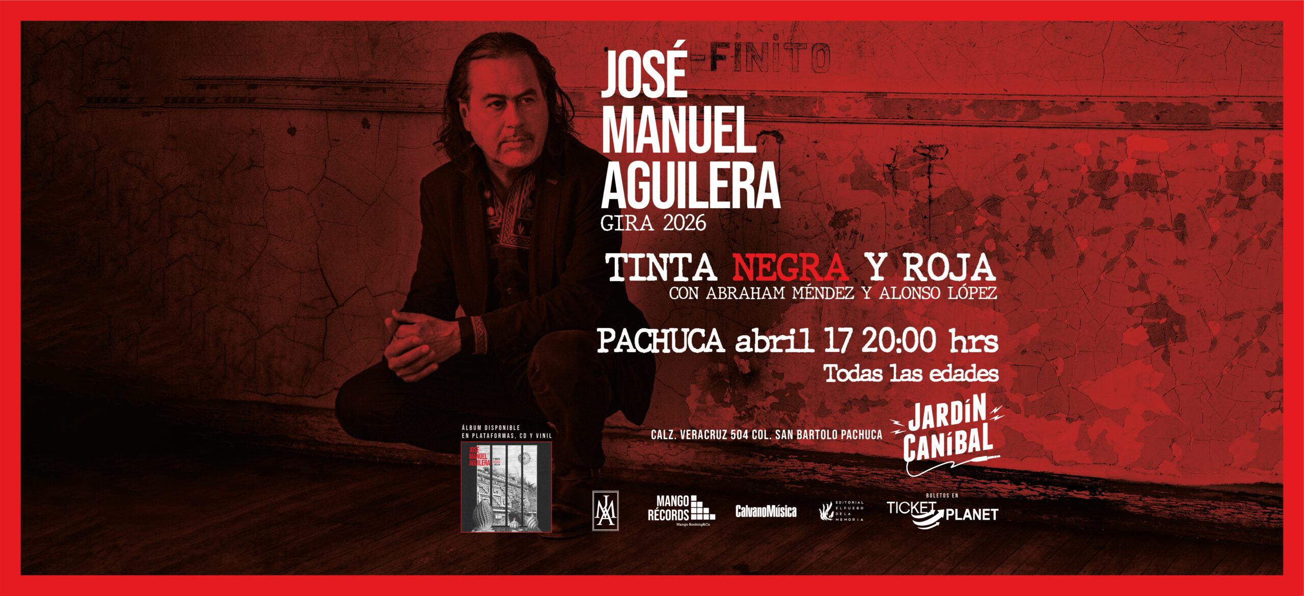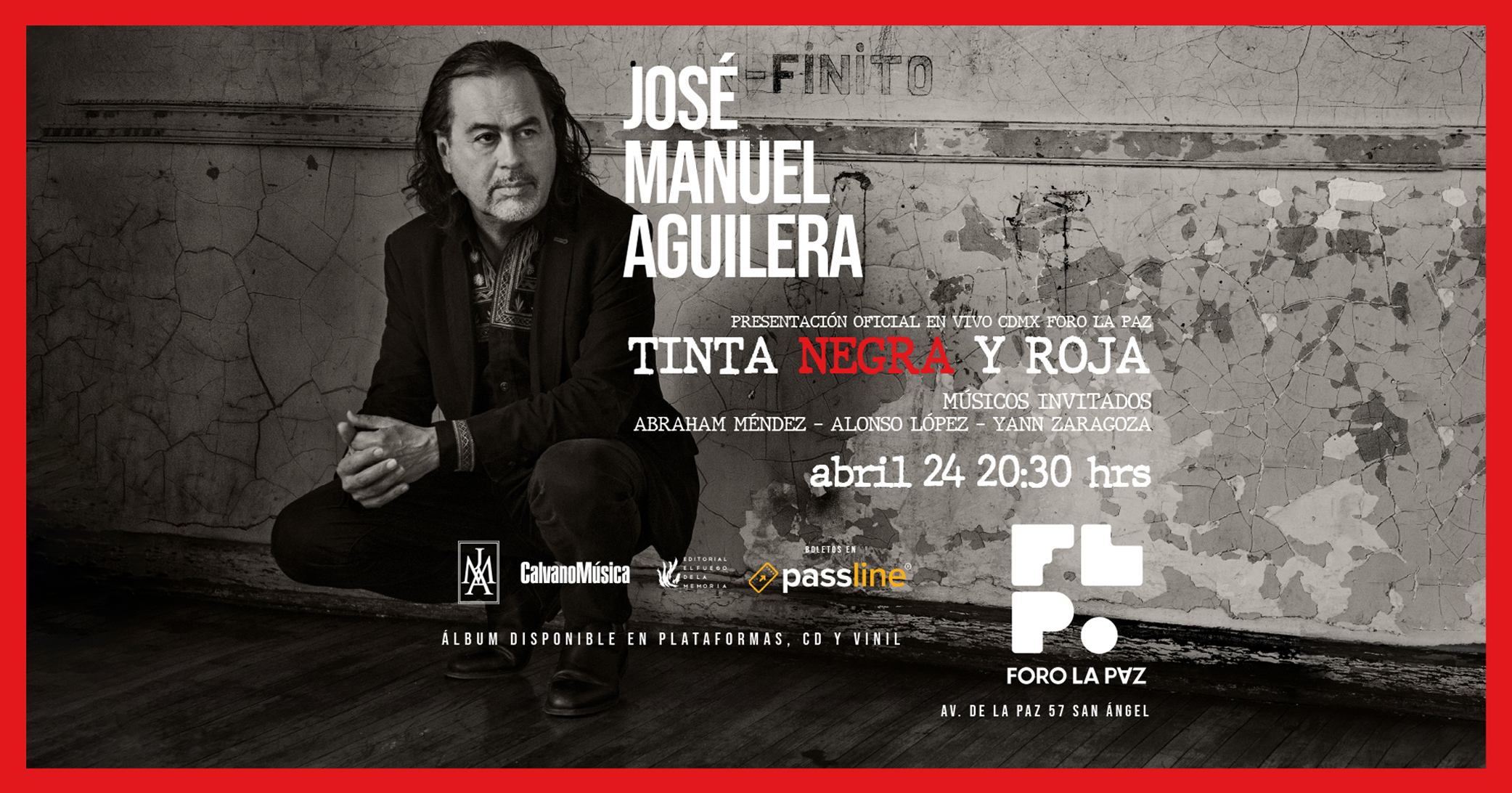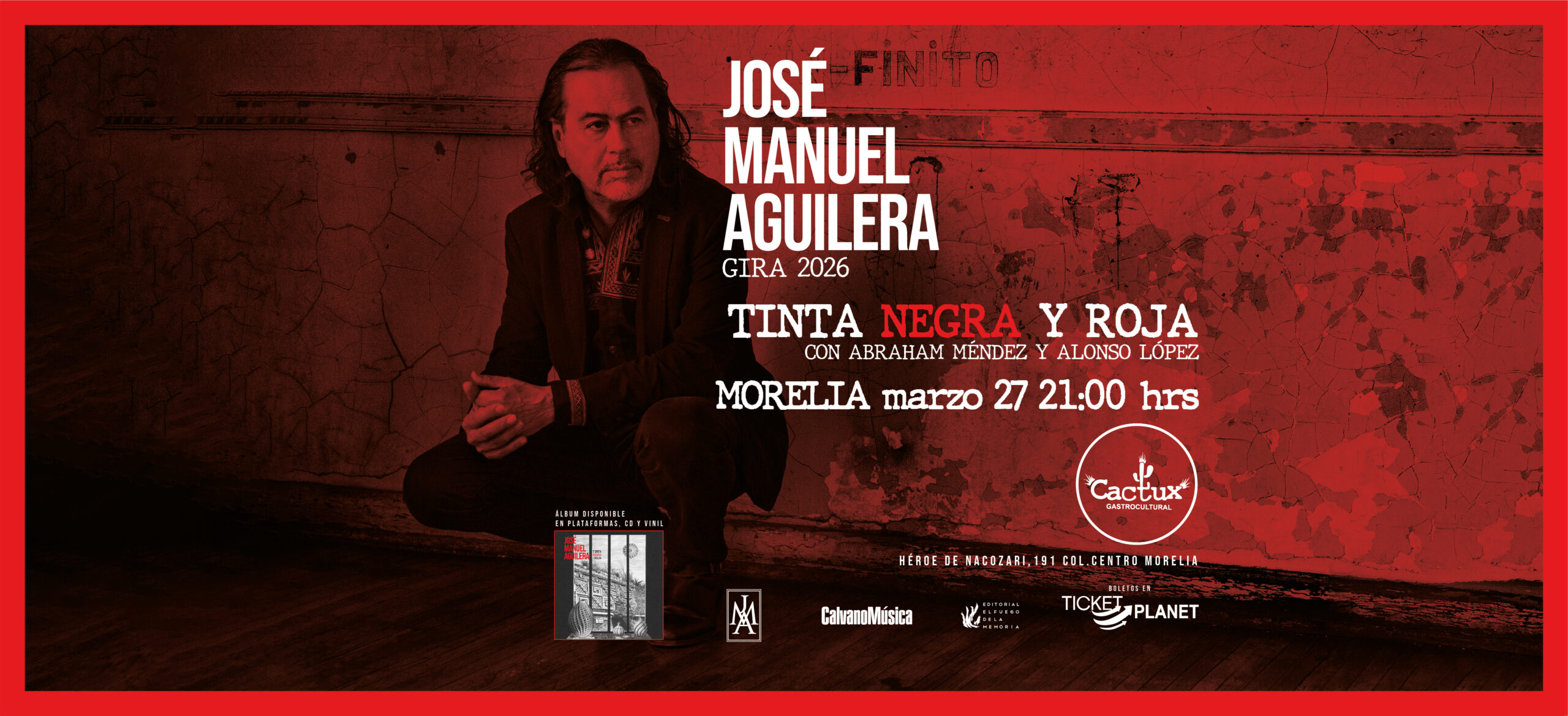 José Manuel Aguilera es compositor, guitarrista, cantante, productor y escritor mexicano. Es el líder del grupo de rock La Barranca, y ha formado parte de Sangre Asteka, Nine Rain y Jaguares. Su nuevo proyecto solista es Tinta Roja y Negra, un álbum instrumental inspirado en la literatura mexicana. El álbum reúne composiciones inspiradas en obras de José Agustín, Octavio Paz, Juan José Arreola, Carlos Castaneda, Miguel León Portilla y Alberto Blanco, entre otros.